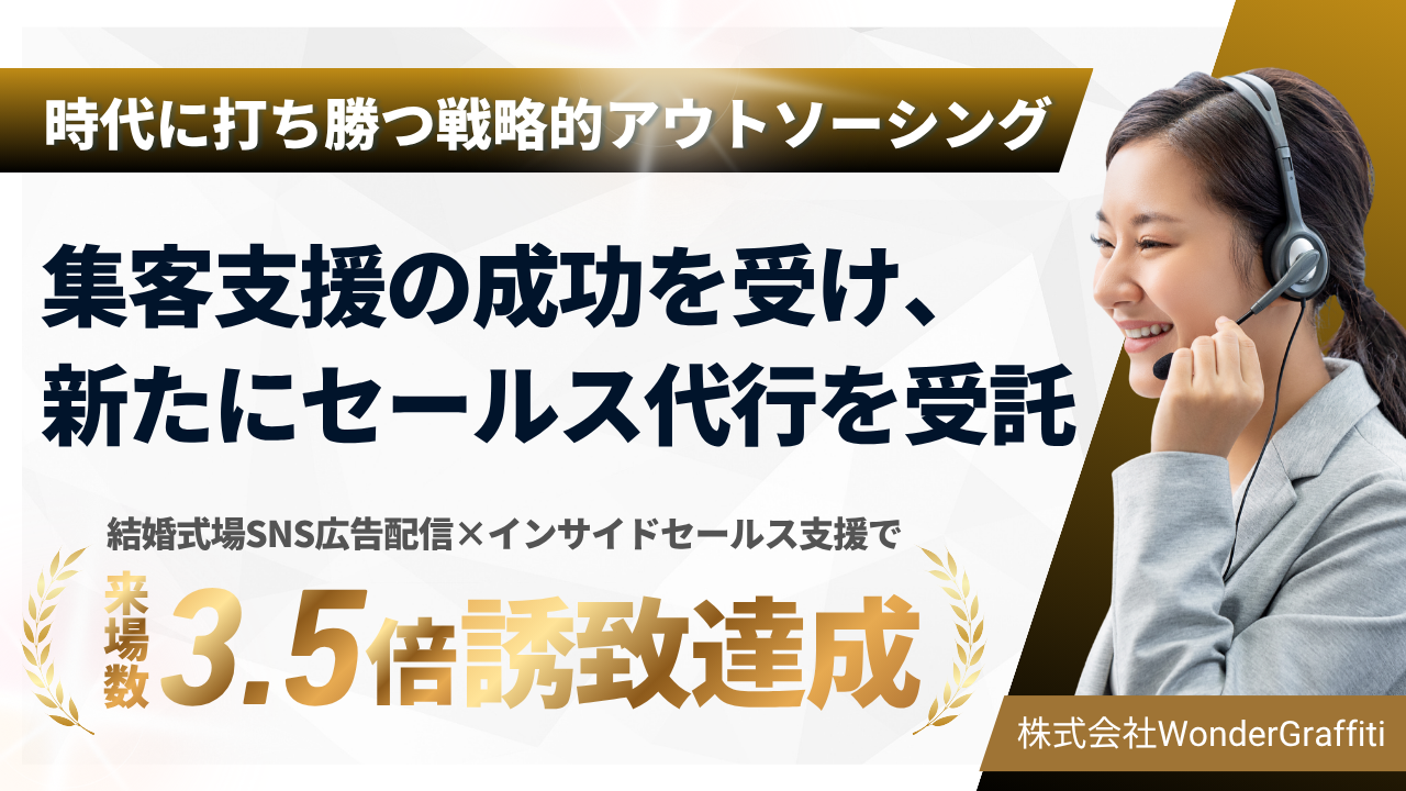 ▼ 株式会社WonderGraffiti|ブライダル企業向け新規セールスのご案内:https://corporate.wondergraffiti.com/service/bridal/sales/